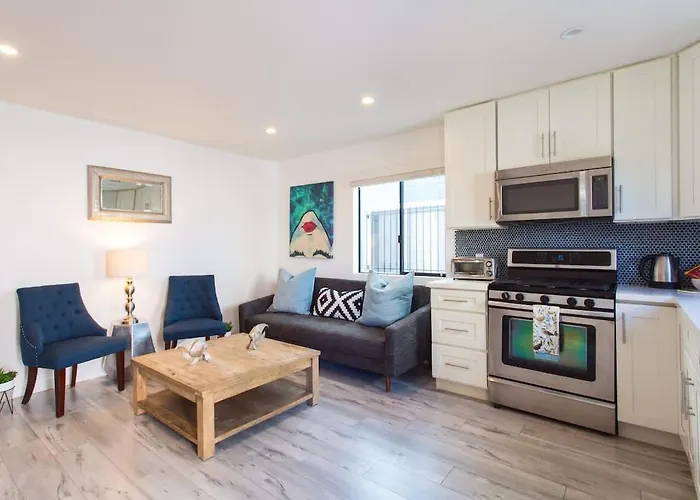 O apartamento Sunny 1 Bedroom In The Heart Of Venice Beach - 2 também oferece cozinha totalmente equipada equipada com forno e máquina de lavar loiça. Este apartamento de 1 quartos está nas proximidades da estação de autocarros Metro.